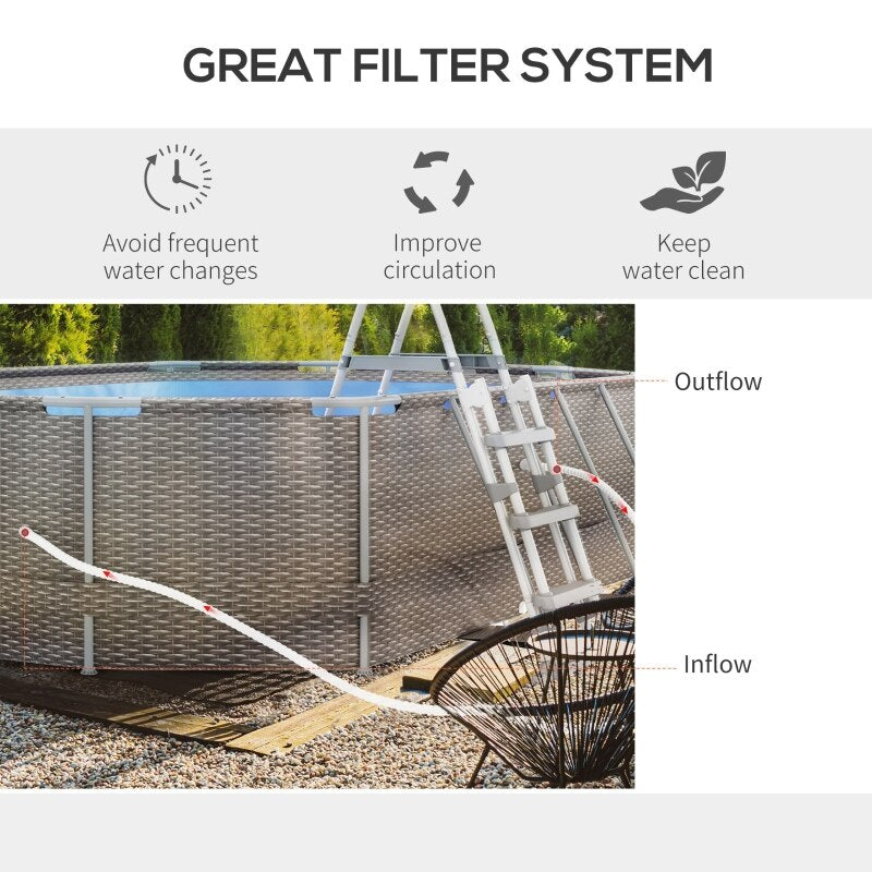 - Strong Steel Frame: The frame of our outdoor pool with pump is made of load-bearing steel, helping it hold enough water to make your swim space about 3 feet deep. The steel is powder-coated to protect it from pool water and ensure greater longevity.